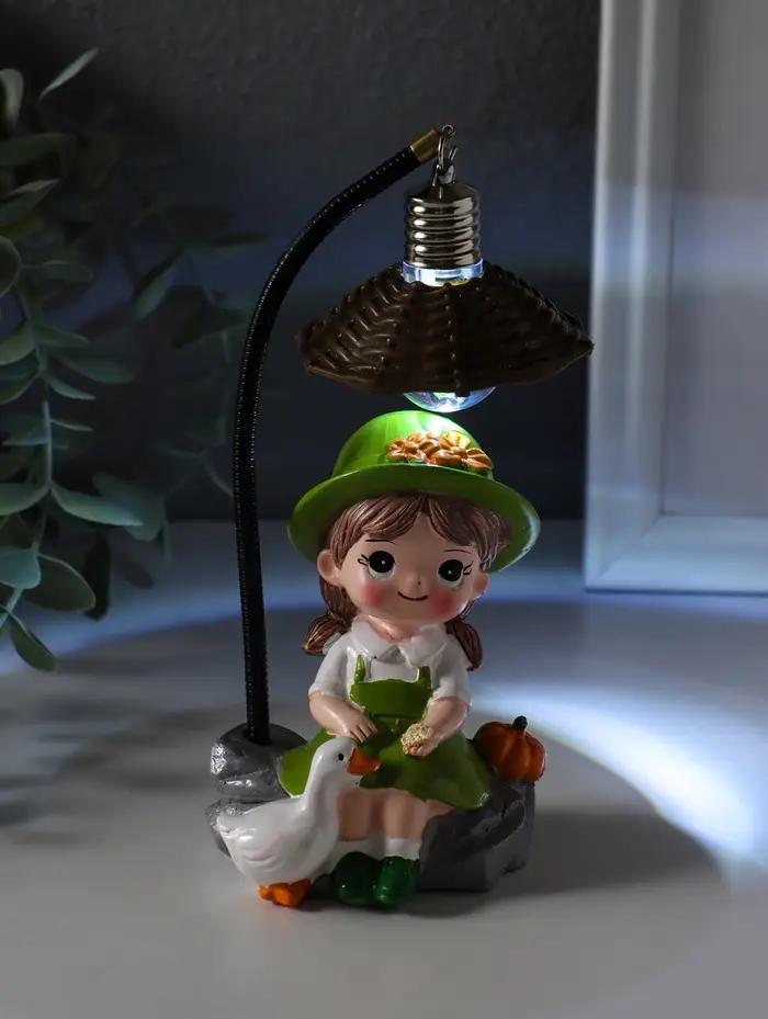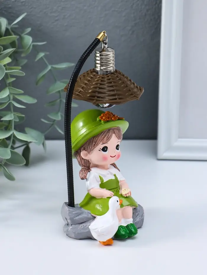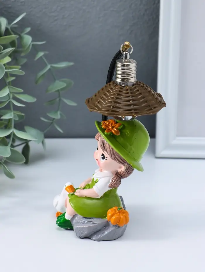 Сувенир полистоун свет "Малышка в шляпке, с гусём" зелёный 3хAG3 5,5х7х17 см