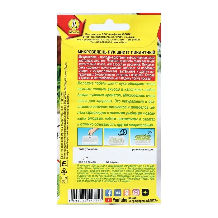 Семена Микрозелень Лук шнитт "Пикантный", 2 г