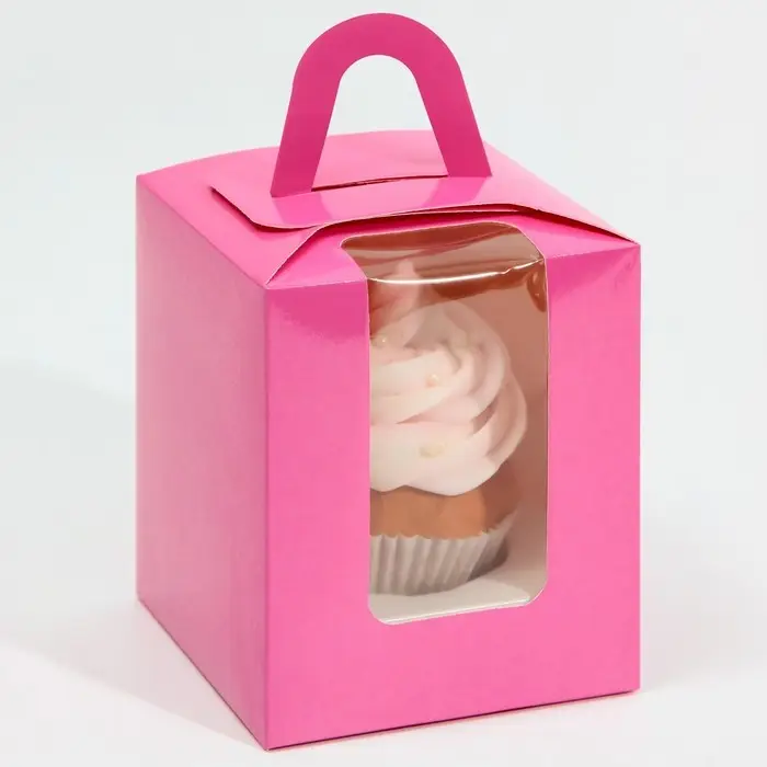 Коробка для капкейков, кондитерская упаковка, 1 ячейка «Фуксия », 9 х 9 х 11 см