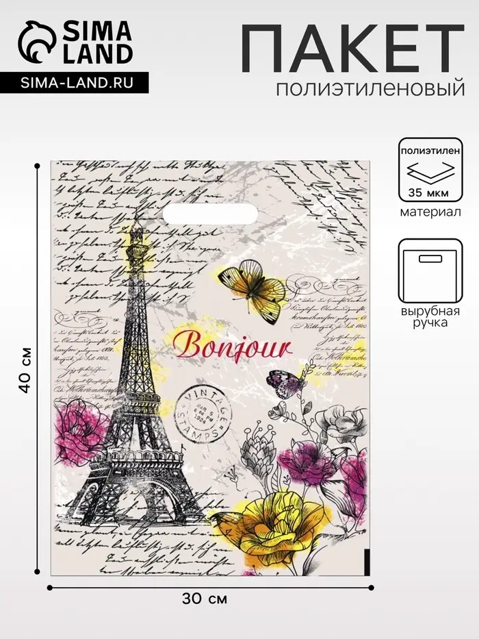Пакет «Елисейские поля», полиэтиленовый с вырубной ручкой, 35 мкм, 30×40 см