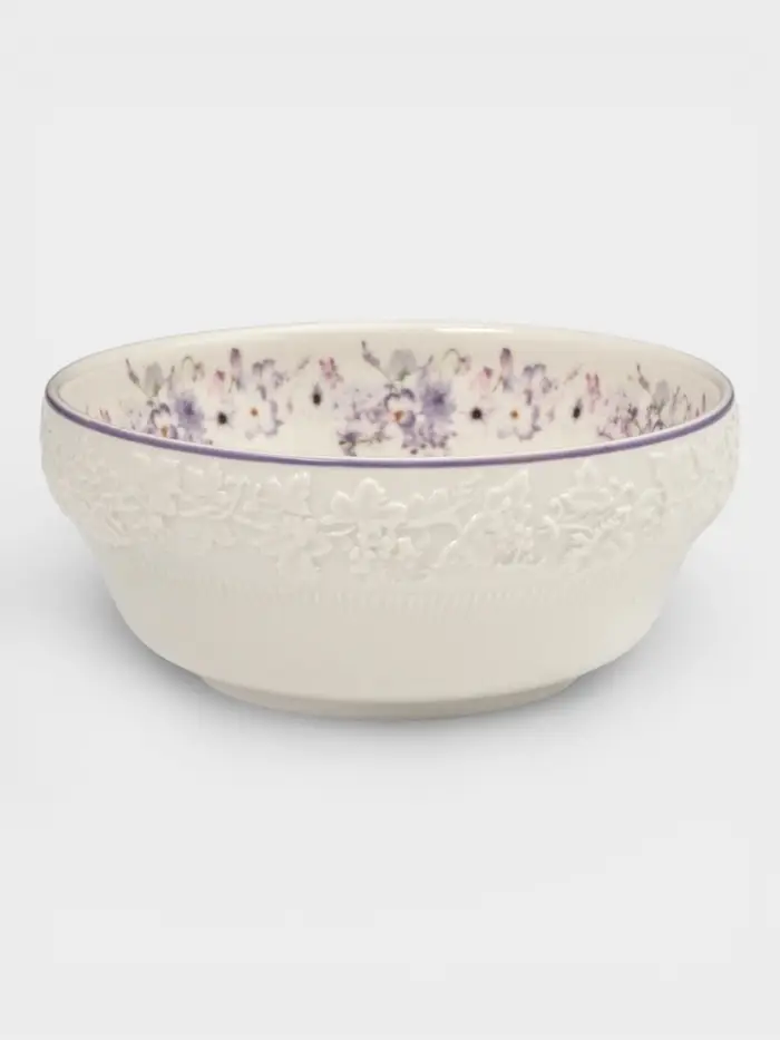 Этот салатник превращает простую подачу в ”сад на столе” — особенно если дополнить его другими предметами из коллекции. Нейтральный белый фон делает узор универсальным: он уместен и на завтрак, и на фуршете. Лёгкий рельеф придаёт изделию характер, не требуя особого ухода.