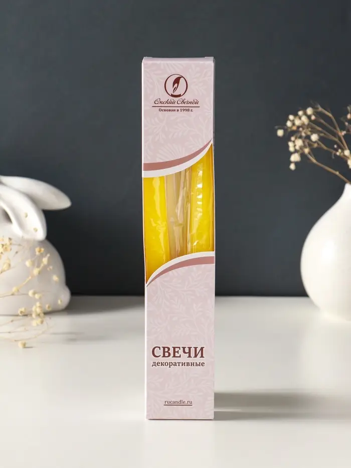 Набор свечей античных, 2,3х 24,5 см, 5 ч, 55 г, 2 штуки, жёлтый