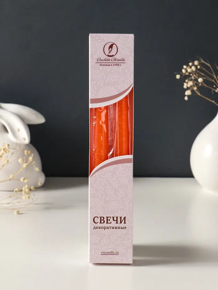 Набор свечей античных, 2,3х 24,5 см, 5 ч, 55 г, 2 штуки, оранжевый