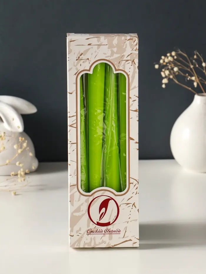 Набор свечей античных, 2,3х 24,5 см, 5 ч, 55 г, 4 штуки, зелёный