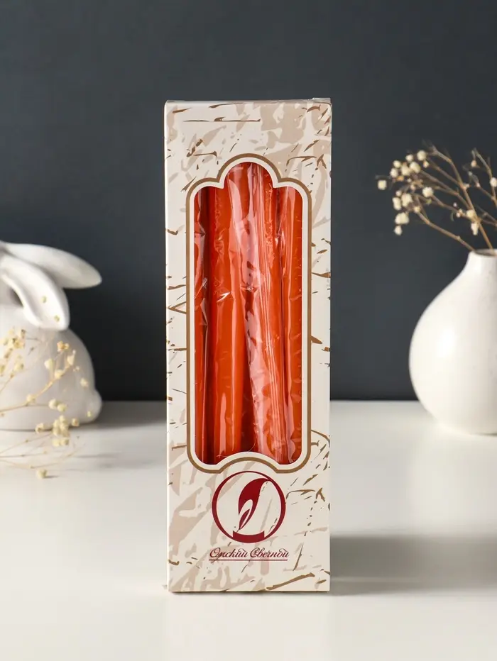 Набор свечей античных, 2,3х 24,5 см, 5 ч, 55 г, 4 штуки, оранжевый