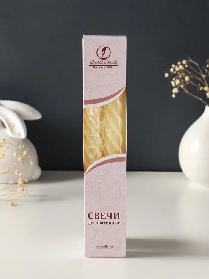 Набор свечей витых, 2,3х 24,5 см, 5 ч, 50 г, 2 штуки, слоновая кость