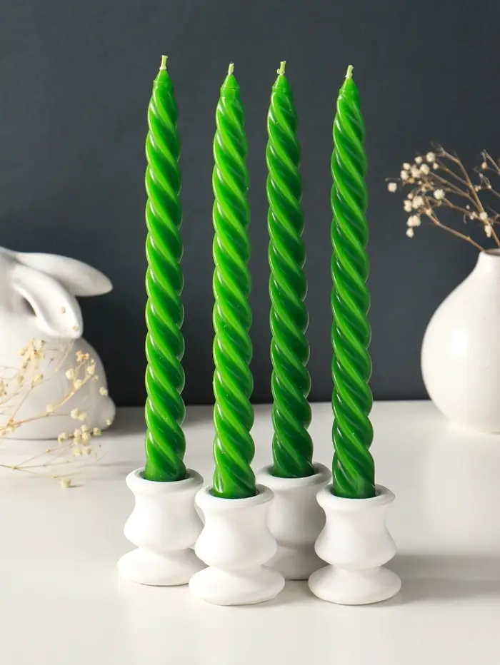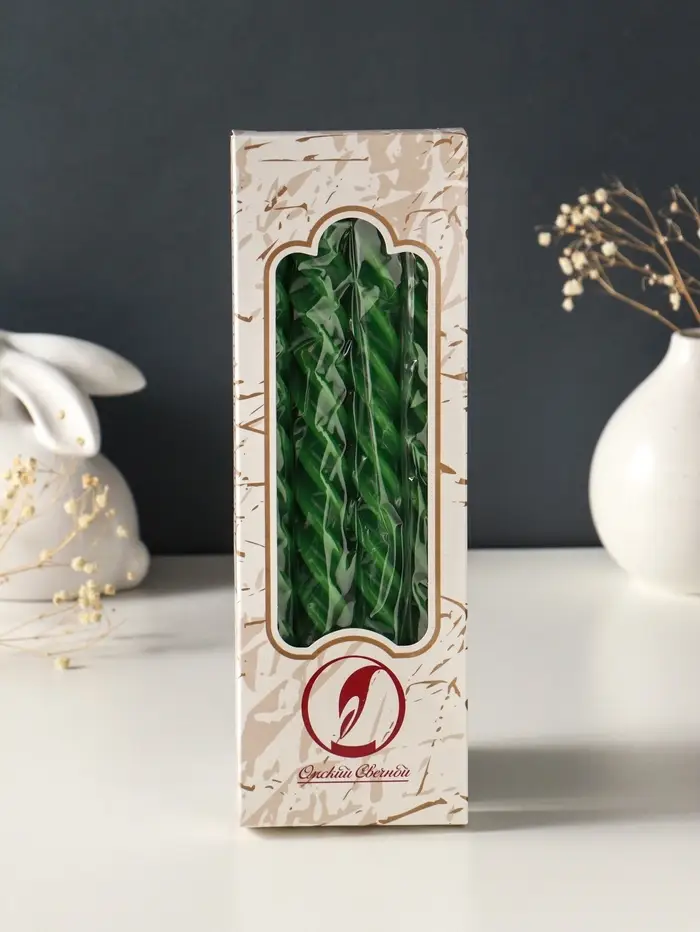 Набор свечей витых, 2,3х 24,5 см, 5 ч, 50 г, 4 штуки, тёмно-зелёный