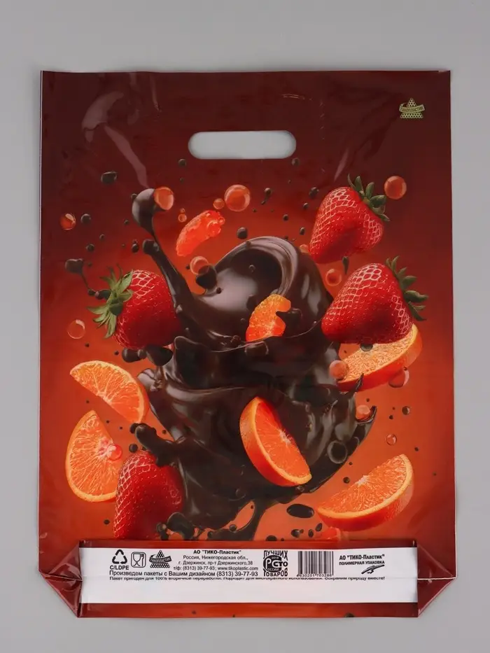 Пакет подарочный Клубника в шоколаде 40 х 31 см 60 мкм
