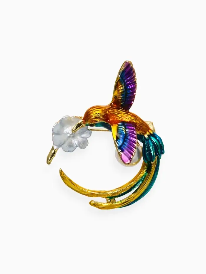Брошь "Калибри с бусиной", цветная в золоте