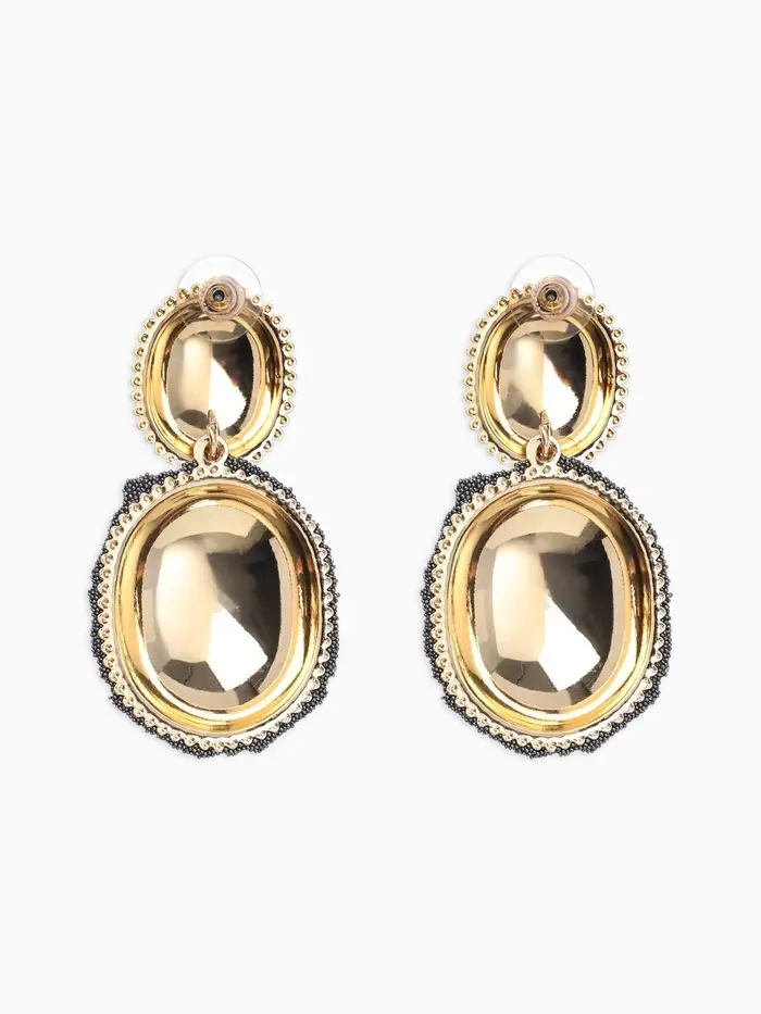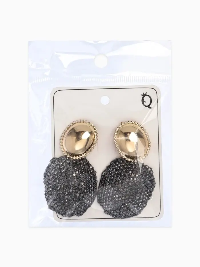 Серьги "Сияние вечера" овал двойной, цвет серый в золоте