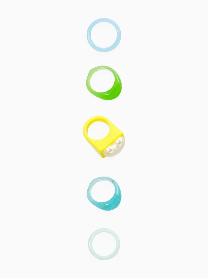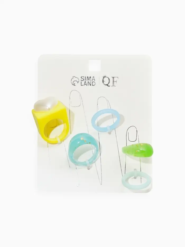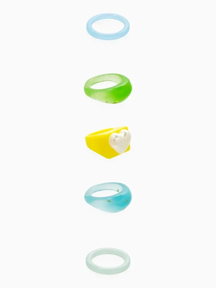 Набор колец 5 шт "Стиль лёгкий" сердце, размер МИКС (17-19), цветные