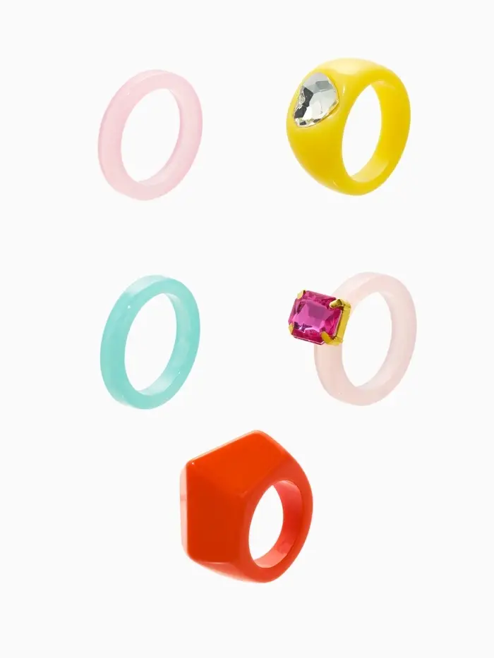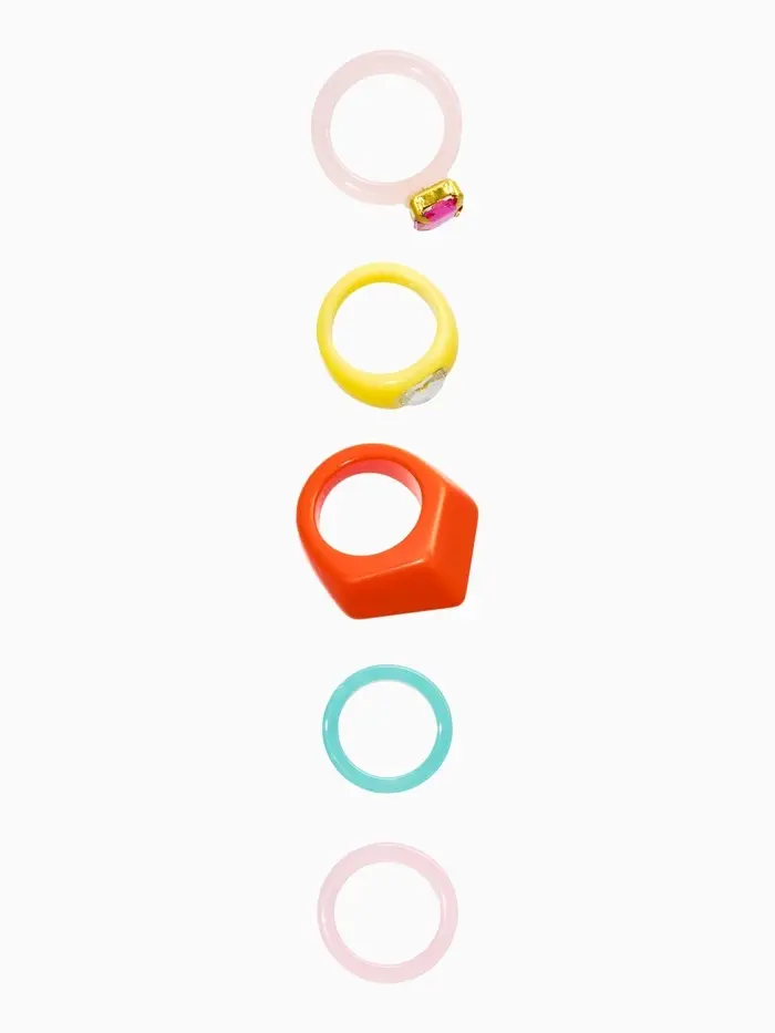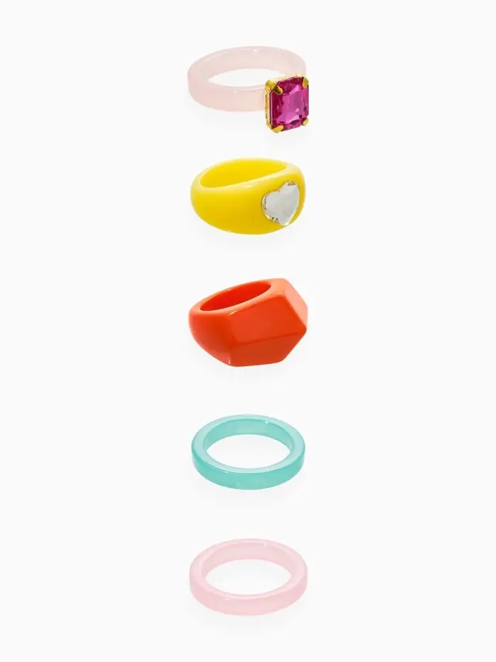 Набор колец 5 шт "Стиль лёгкий" кристалл и сердце, размер МИКС (17-19), цветные