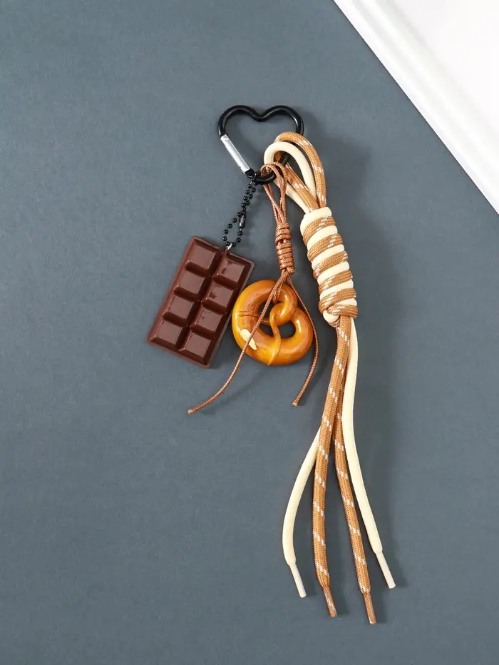 Брелок на карабине пластик, текстиль "Шоколад и крендель" с узлом 23х6,8х2 см