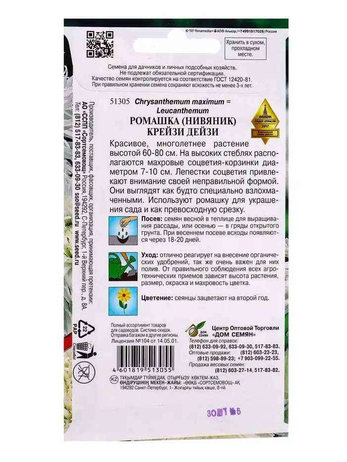 Семена цветов Ромашка Крейзи Дейзи 30 шт