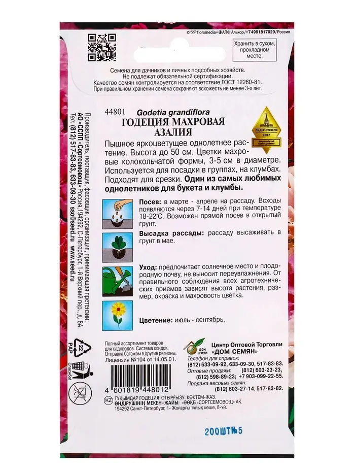 Семена цветов Годеция Азалия, махровая 200 шт