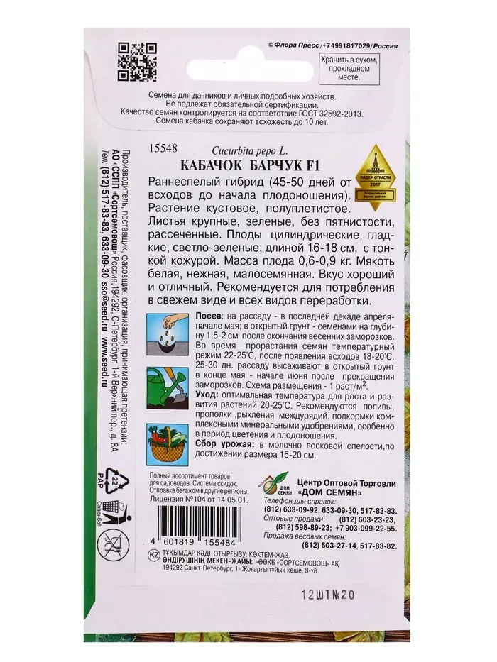 Семена Кабачок Барчук F1 12 шт