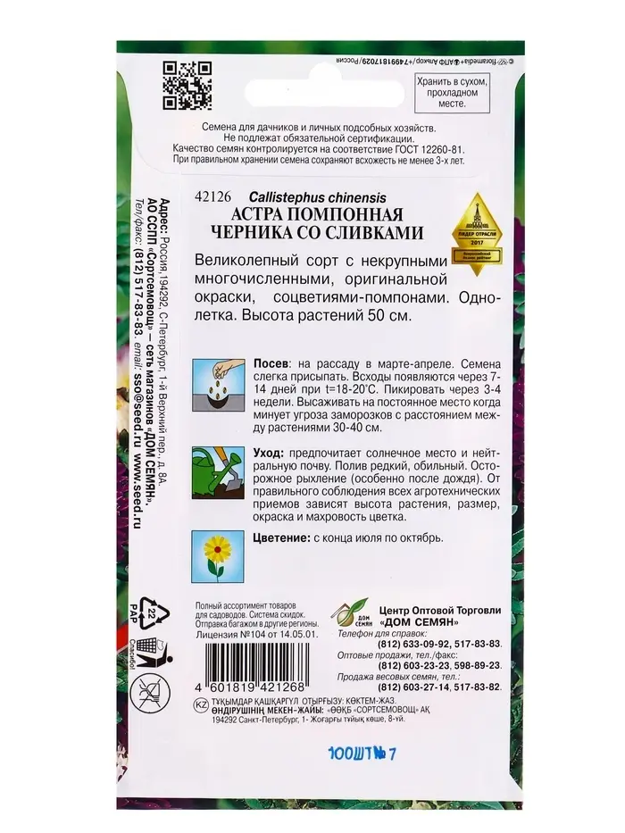 Семена цветов Астра помпон. Черника со сливками 100 шт