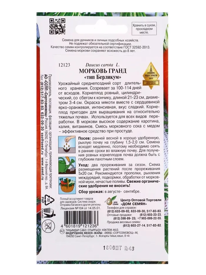 Семена Морковь Гранд 1800 шт