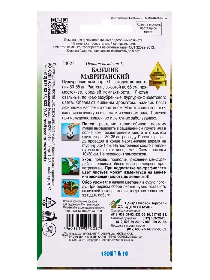 Семена Базилик Мавританский 130 шт
