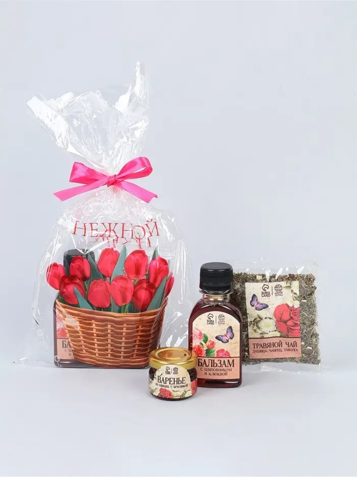 Набор: чай варенье бальзам "8 марта с розами" в пакете