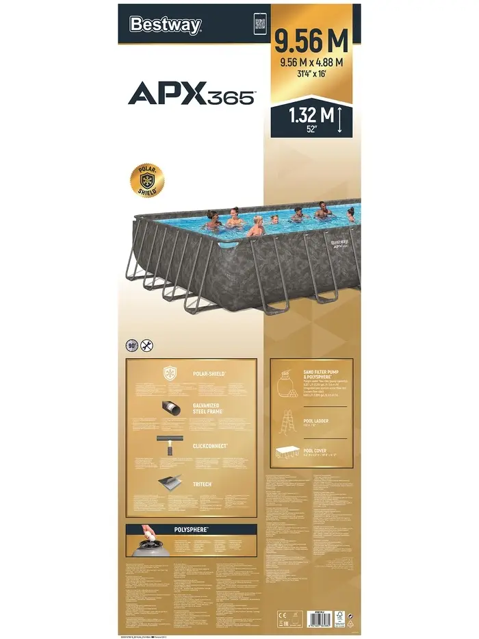 Бассейн каркасный Power Steel 956 х 488 х 132 см (фильтр-насос,лестница,тент) 561KJ