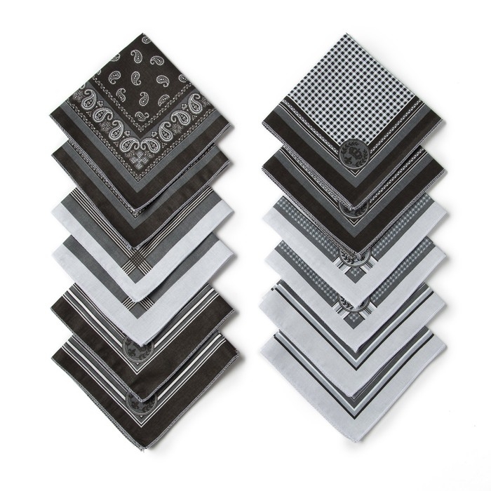 Платки носовые мужские Этель 30*30 см,(набор 12 шт,) цв.Черный, рис. МИКС 100% хл