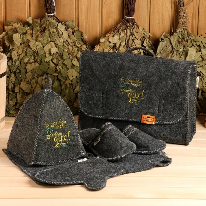 Набор банный портфель 5 предметов "В Здоровом теле, здоровый дух", серый