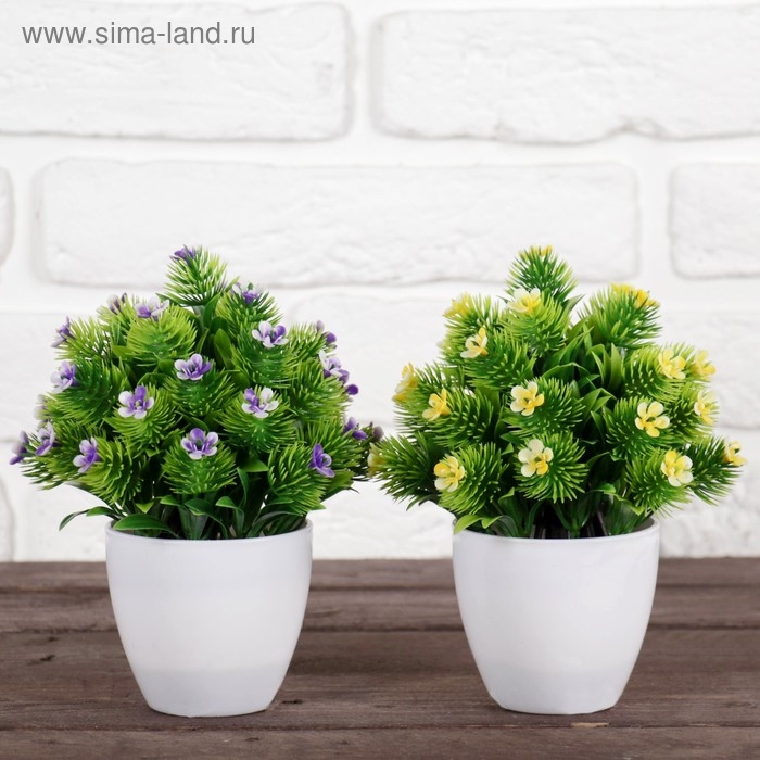 Бонсай в горшке "Пушистый цветочный куст" 8х16 см, микс