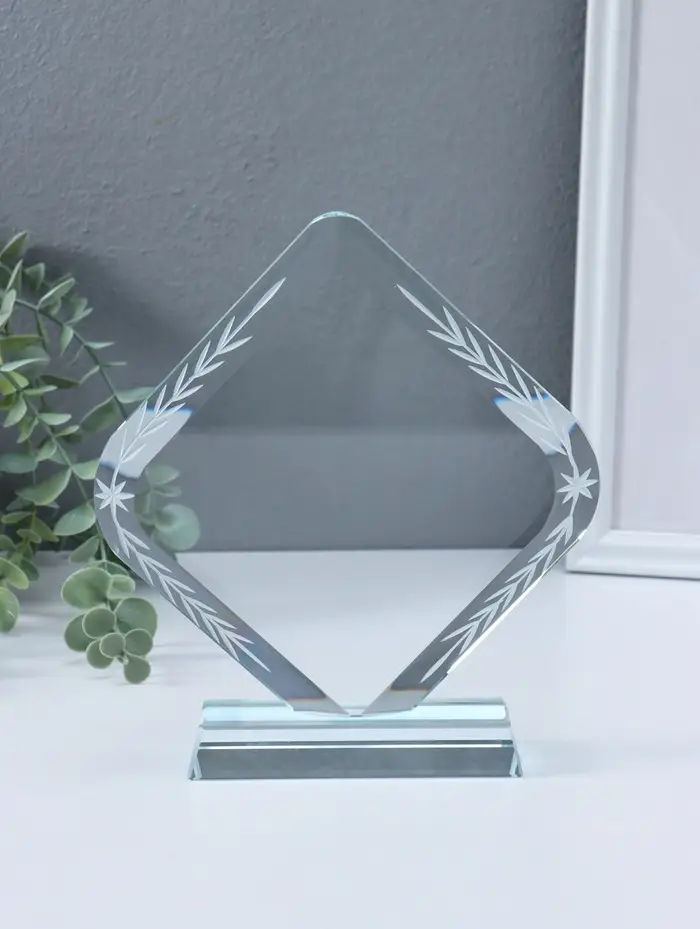 Стела наградная стекло "Ромб" площадка 17,5х18,3 см 3,5х17,5х20 см