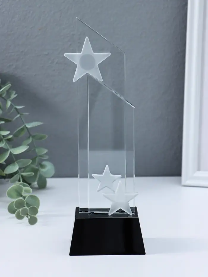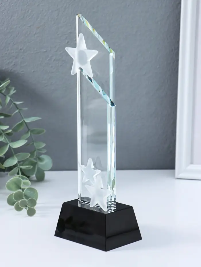Стела наградная стекло "Звездопад" подставка h=4 ширина 6 и 8 см 6х8х22,5 см