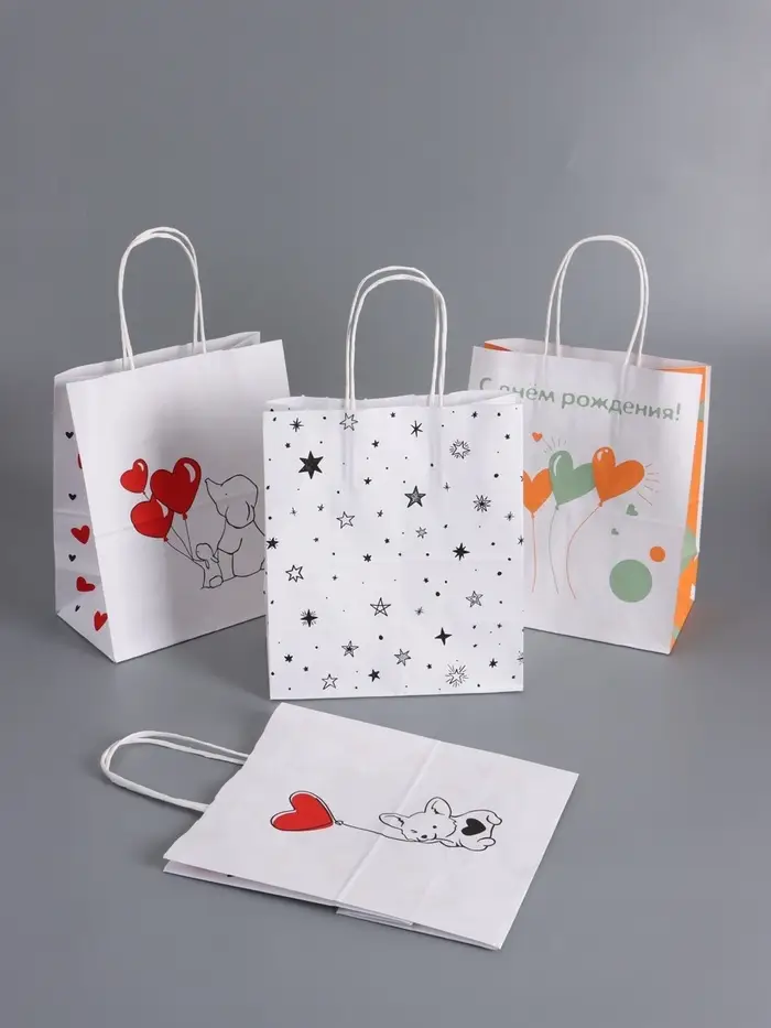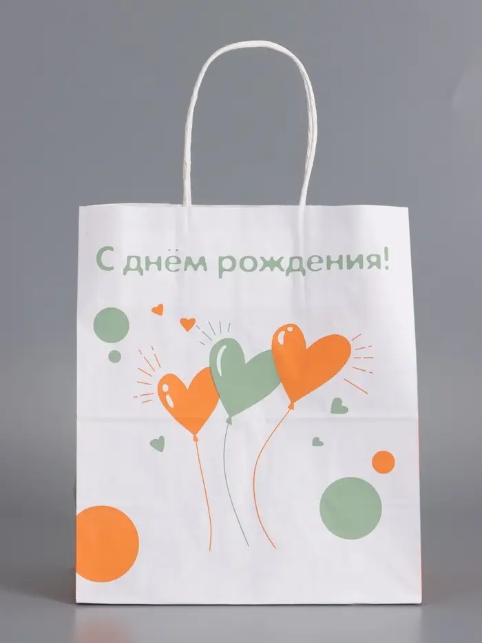 Пакеты подарочные, "С Днем Рождения", 22 х 12 х 25 см , набор 4 шт