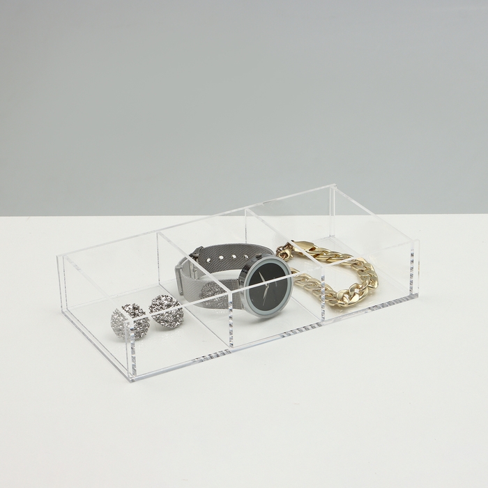 Подставка для презентации, 3 ячейки, 20,3×10,2×3,8 см, оргстекло 2 мм, В ЗАЩИТНОЙ ПЛЁНКЕ