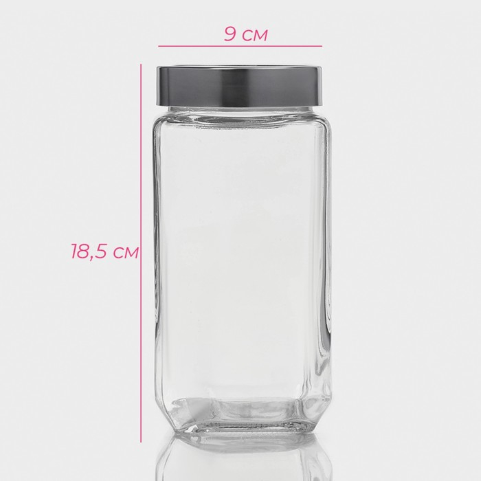 Банка стеклянная для хранения сыпучих продуктов Доляна «Призма», 1 л, 9×18,5 см, с металлической крышкой