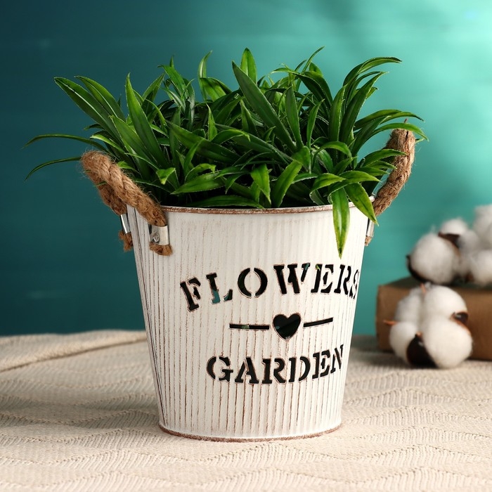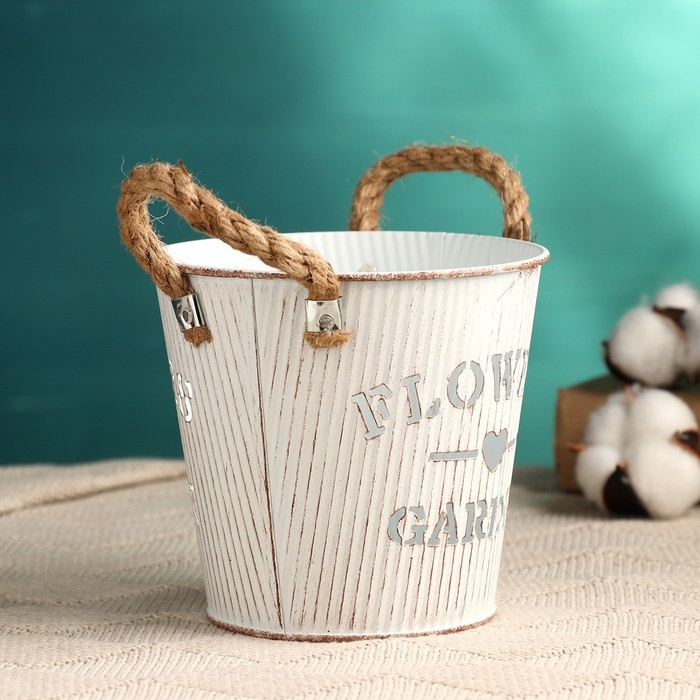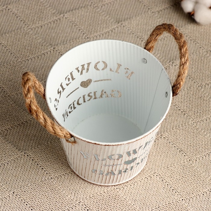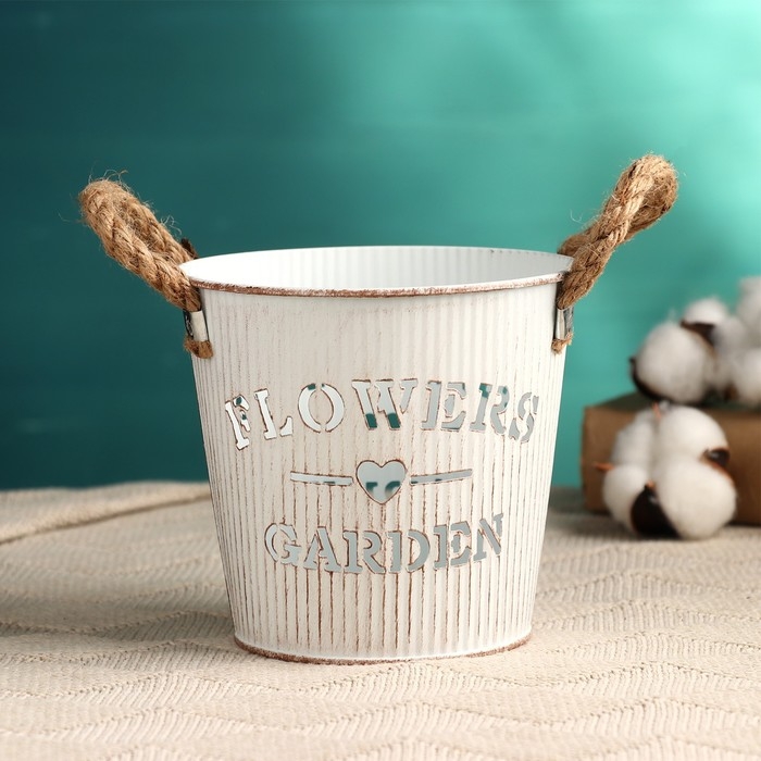 Кашпо "Ведерко цветочный сад" белое, 13х13х12см