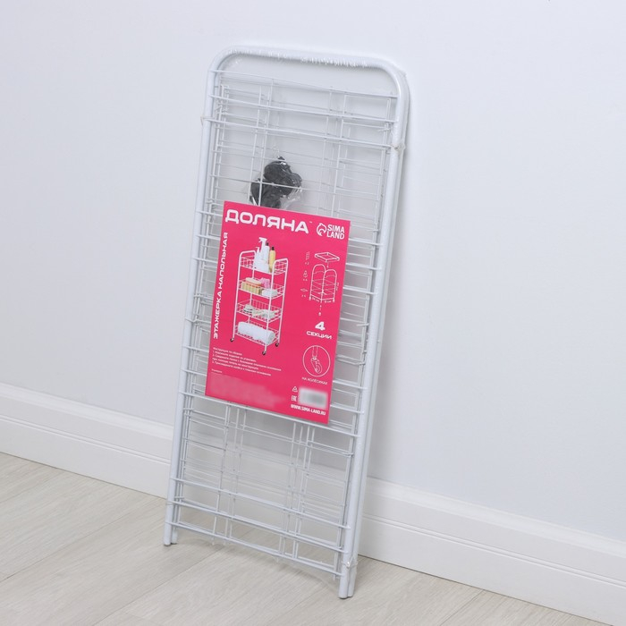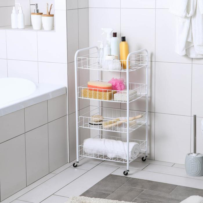 Этажерка напольная 4-х секционная Доляна, на колёсах, 31×34×77 см, цвет белый