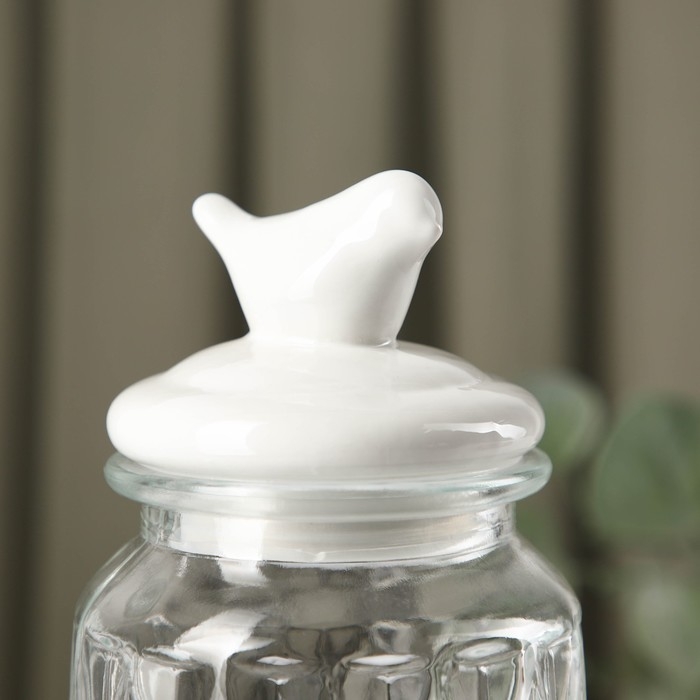 Банка стеклянная для сыпучих продуктов с керамической крышкой Доляна «Голубки», 1 л, 11×24 см