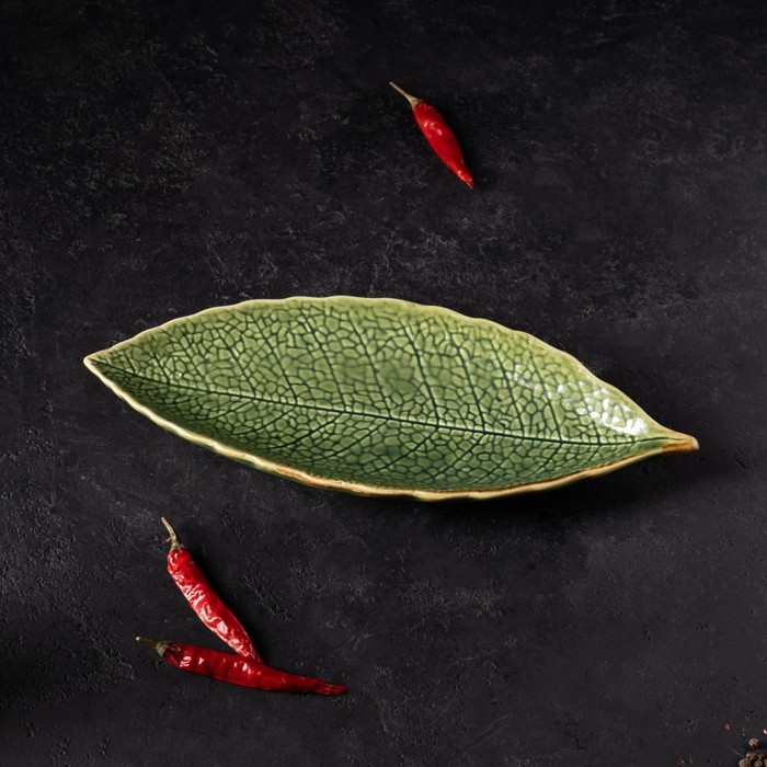 Блюдо керамическое сервировочное «Дендрарий», 26×10,5×1,5 см, цвет зелёный