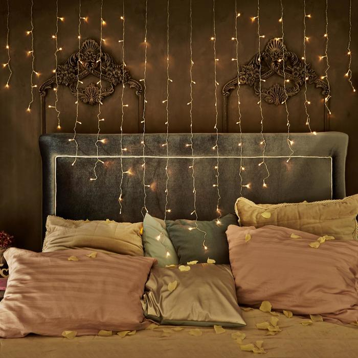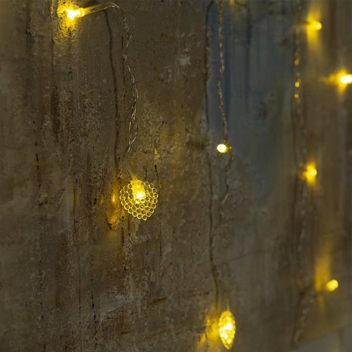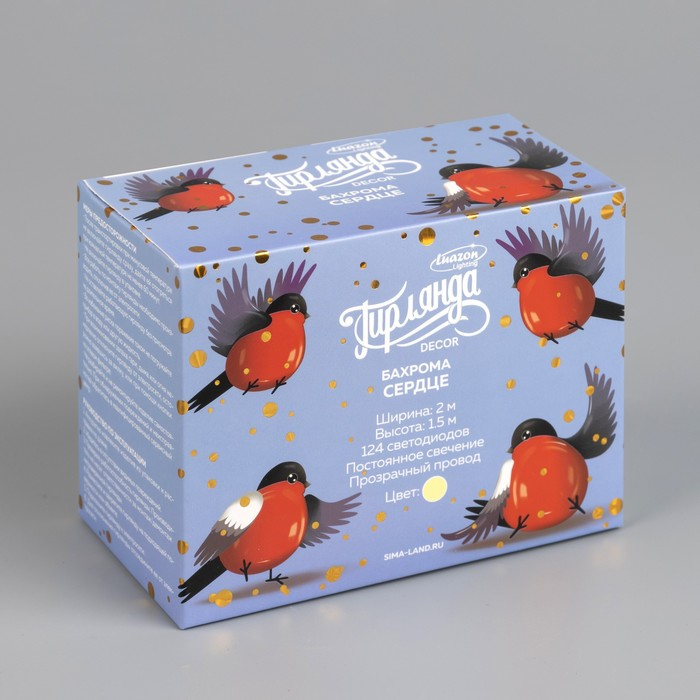 Гирлянда «Бахрома» 2 × 1.5 м с насадками «Сердце», IP20, прозрачная нить, 124 LED, свечение тёплое белое, 220 В