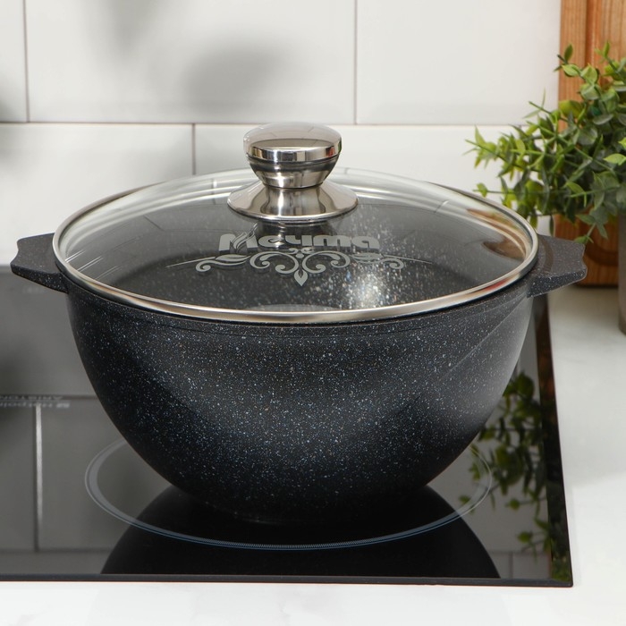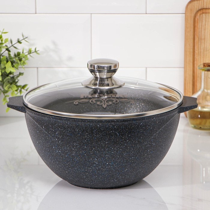 Казан «Гранит Stаr», 4 л, стеклянная крышка, литые ручки, антипригарное покрытие, тёмно-синий