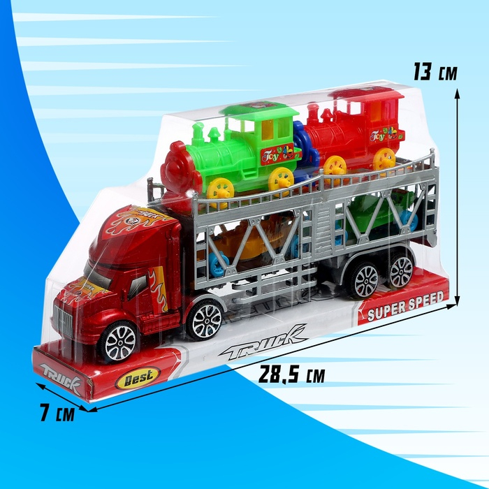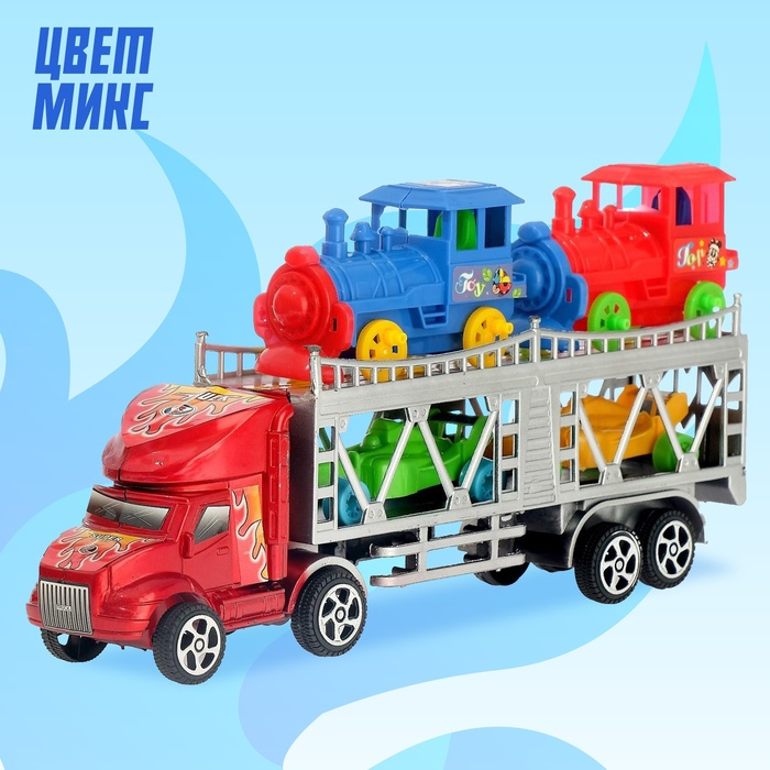 Грузовик инерционный «Автовоз», 2 машинки и 2 паровоза, цвета МИКС