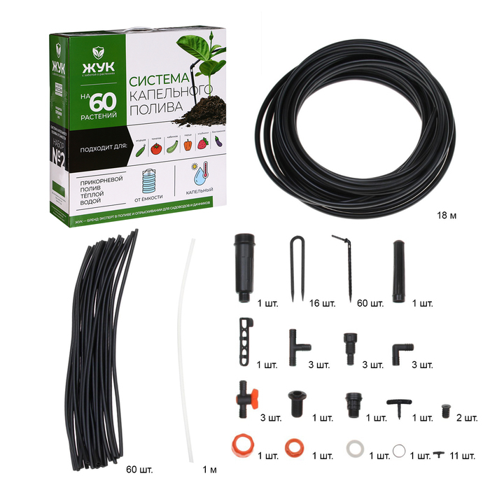 Набор для капельного полива от ёмкости, на 60 растений, «Жук»