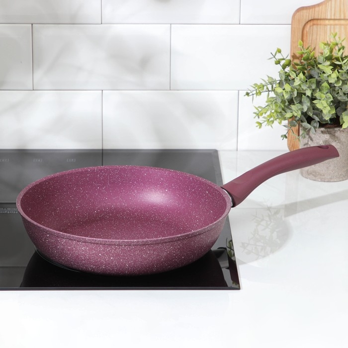Сковорода Доляна Promo, d=22 см, h= 5 см, пластиковая ручка, антипригарное покрытие, цвет бордовый
