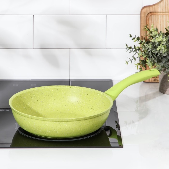 Сковорода Trendy style, d=24 см, пластиковая ручка, антипригарное покрытие, цвет зелёный