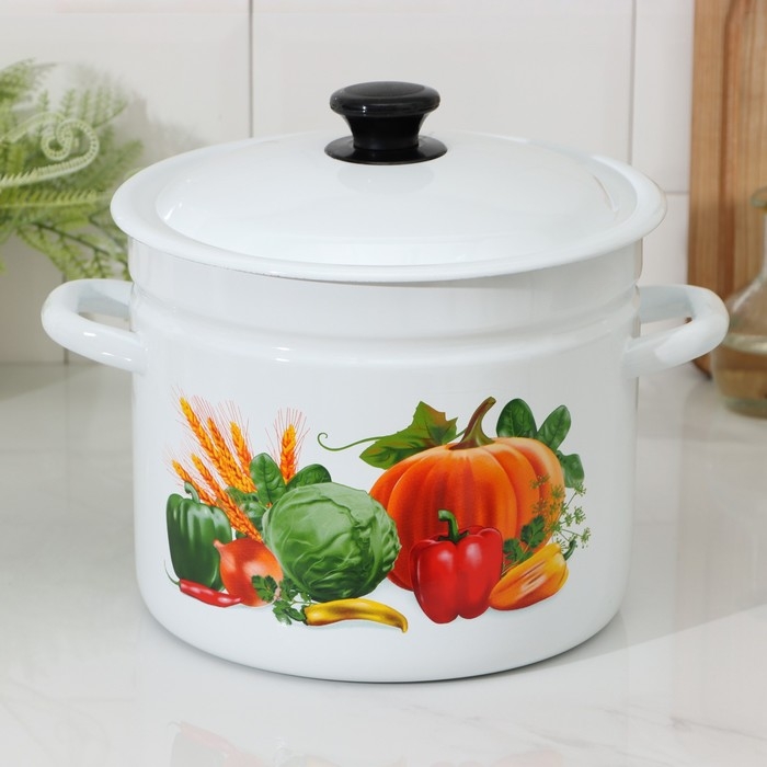 Кастрюля эмалированная цилиндрическая, 7 л, деколь МИКС