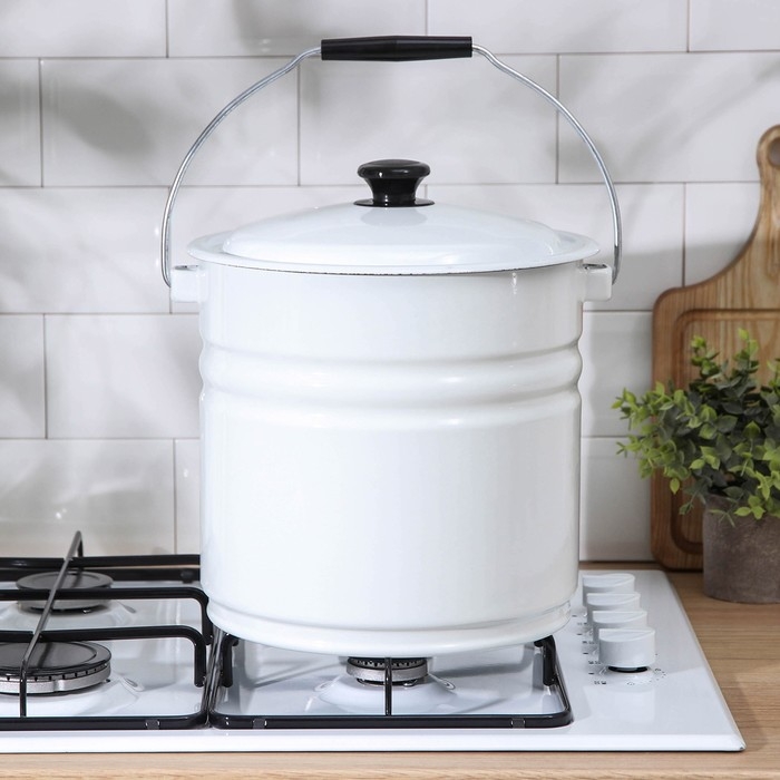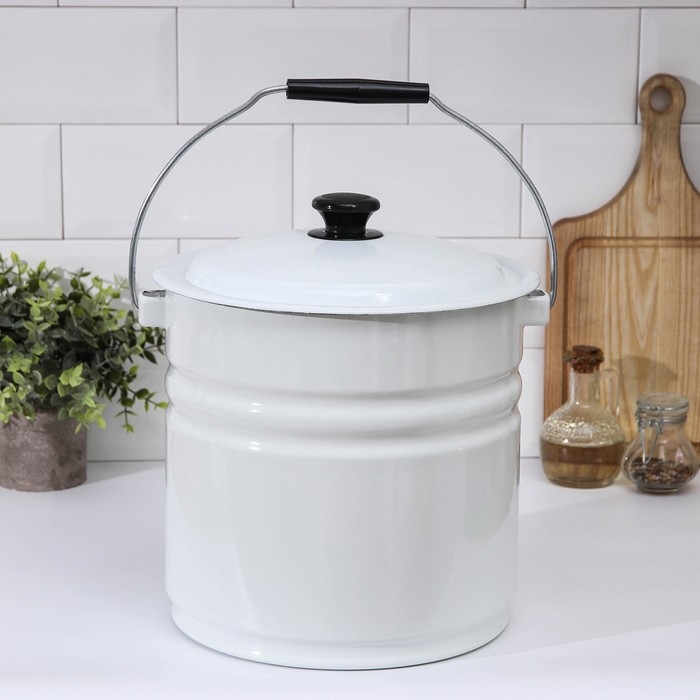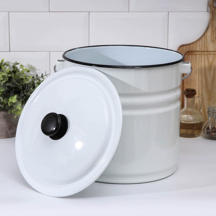 Ведро эмалированное,12 л, с крышкой, цвет белый