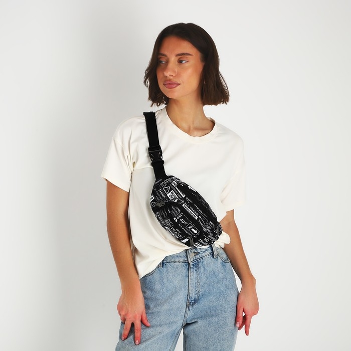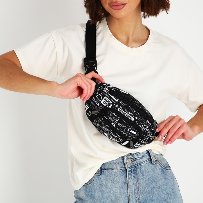 Сумка поясная на молнии, наружный карман, цвет чёрный