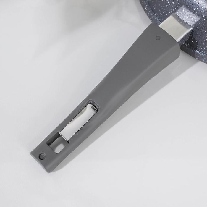 Сковорода «Гранит», d=28 см, стеклянная крышка, съёмная ручка, антипригарное покрытие, цвет серый