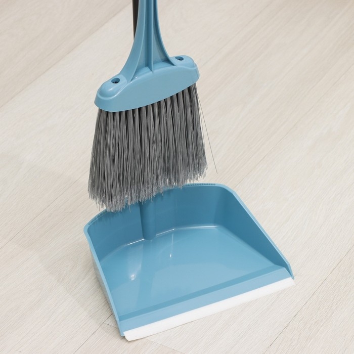 Веник с совком «Ленивка», 19,5×25×90 см, цвет голубой