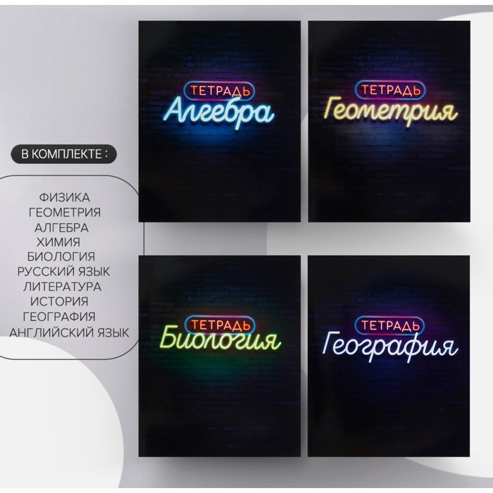 Комплект предметных тетрадей 48 листов «Неон», 10 предметов со справочным материалом, обложка мелованный картон, УФ-лак, блок офсет