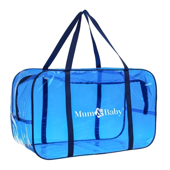 Сумка в роддом, размер 30х50х25 см, цветной ПВХ, цвет прозрачный/синий, Mum&Baby